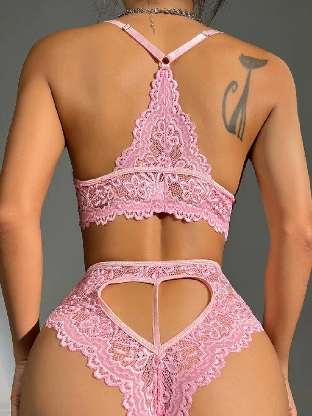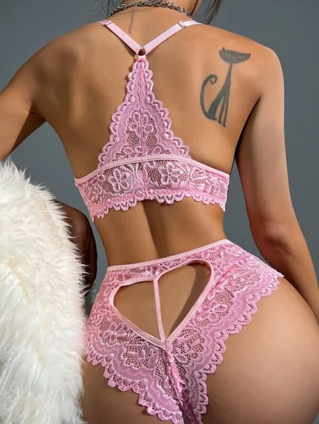 ÖZEL TASARIM PEMBE DANTELLI FANTEZI BRALET SÜTYEN TAKIMI