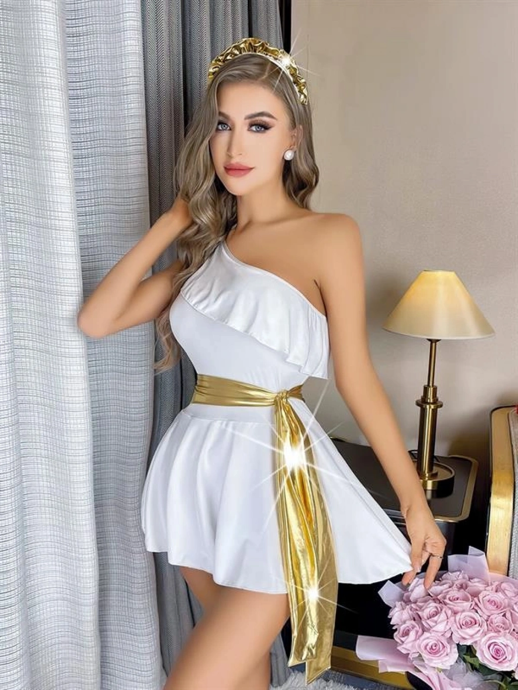 ÖZEL TASARIM BEYAZ FANTEZİ ELBİSE GECELİK