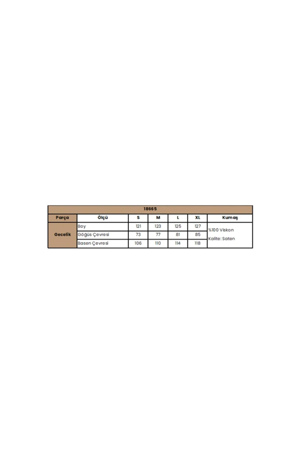 Gecelik: Beyaz renklidir, derin V Yaka dekoltelidir, kalın askılıdır, yakası ve askı kenarları dantellidir, saten kumaştır.